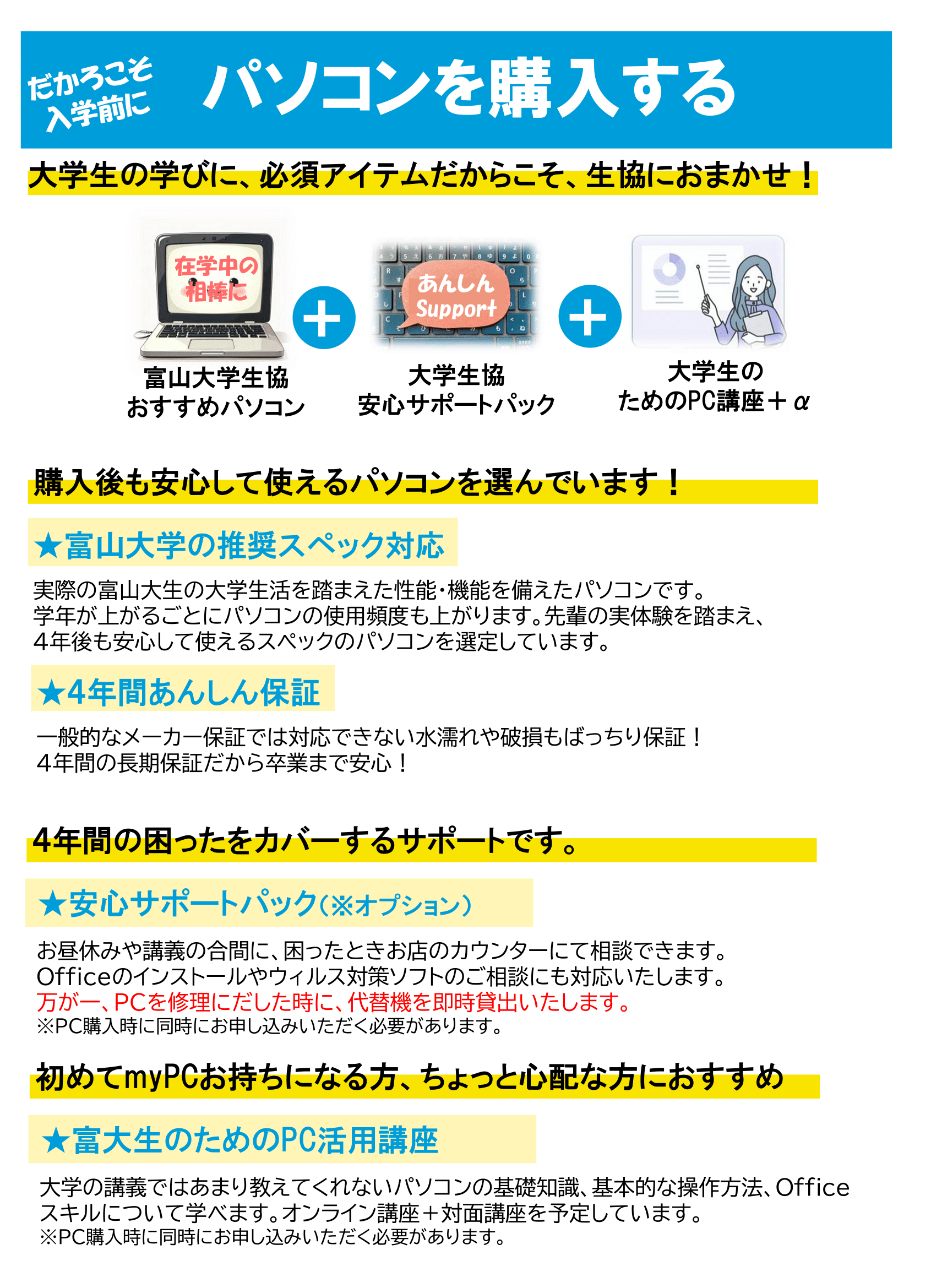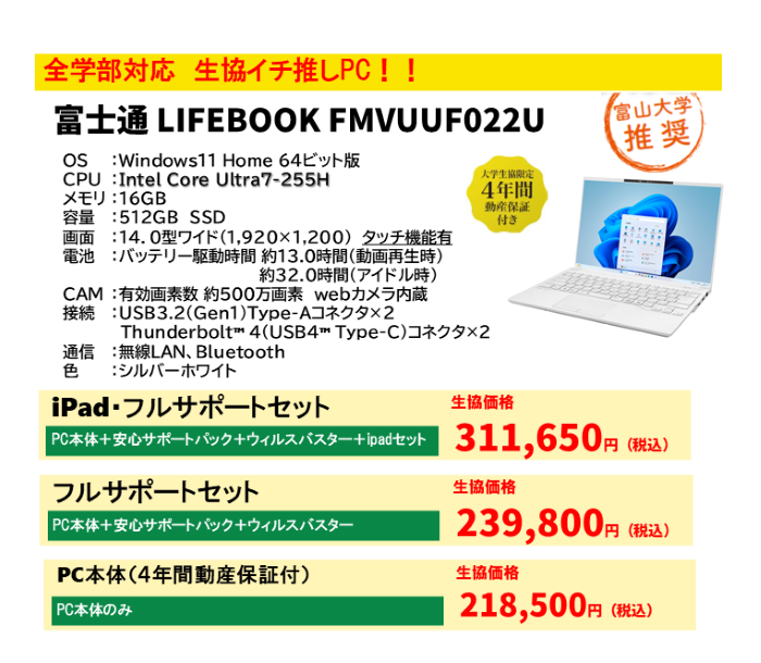 <令和8年度大学推奨スペック対応の生協おすすめPCをご準備しています!!>