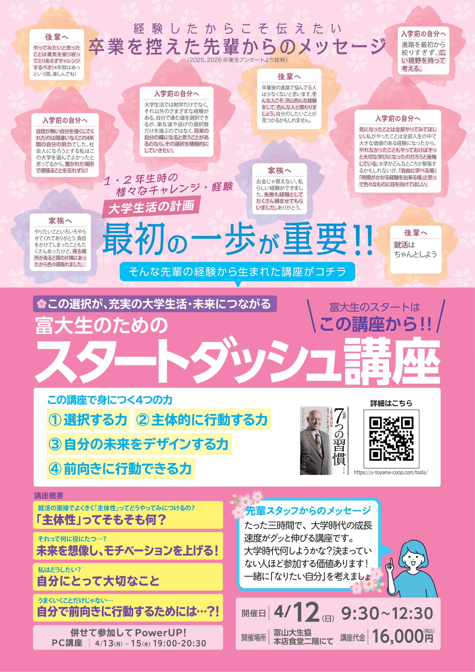 ★★★新入生、必見!! 富大生のためのスタートダッシュ講座 最初の一歩が肝心!★★★